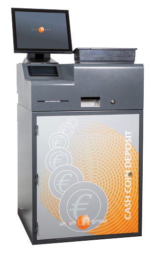 Sistema inteligente de gran volumen para el autodepósito de monedas. Capacidad: hasta 24000 monedas. Velocidad: de 250 a 1500 monedas/min.